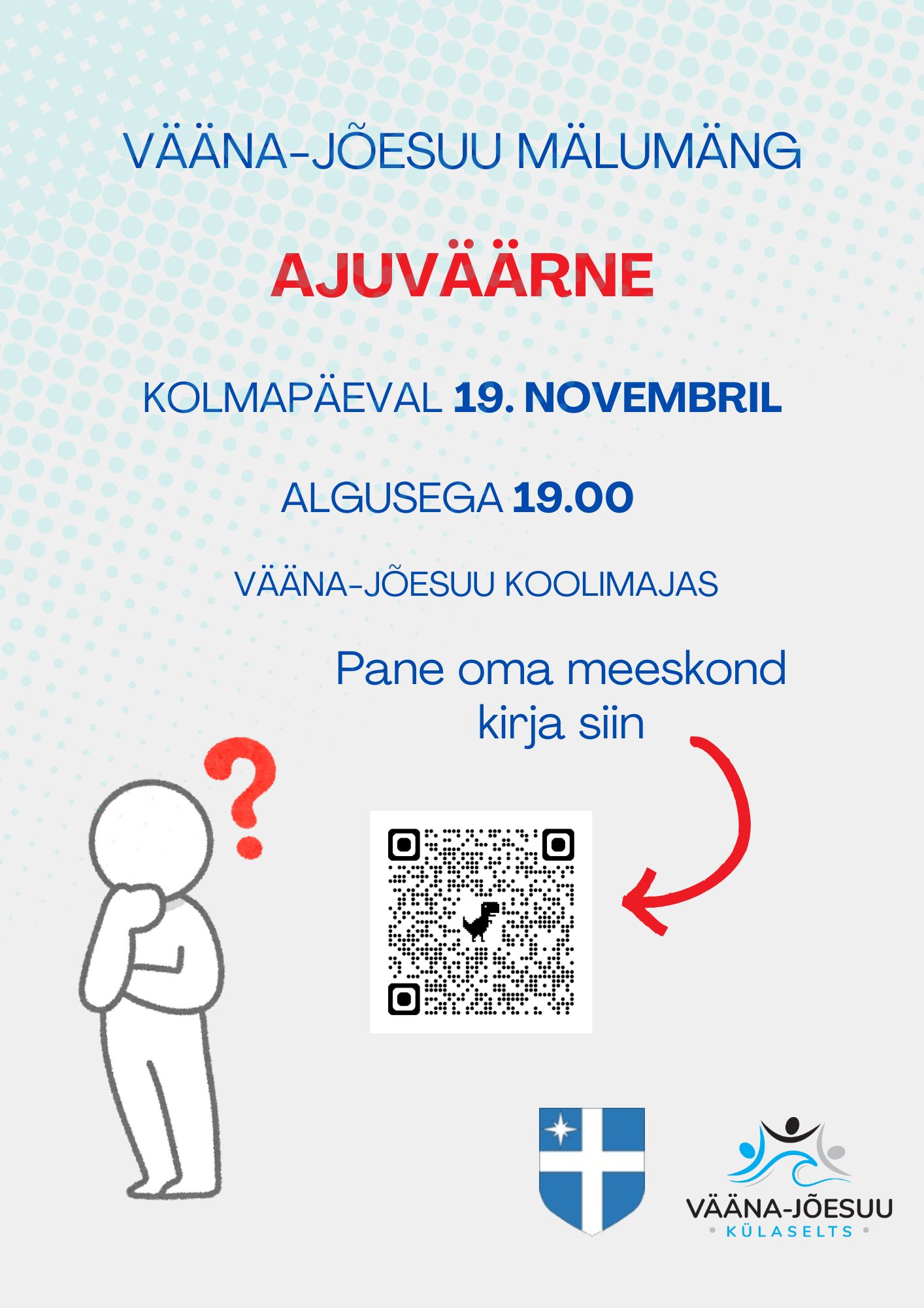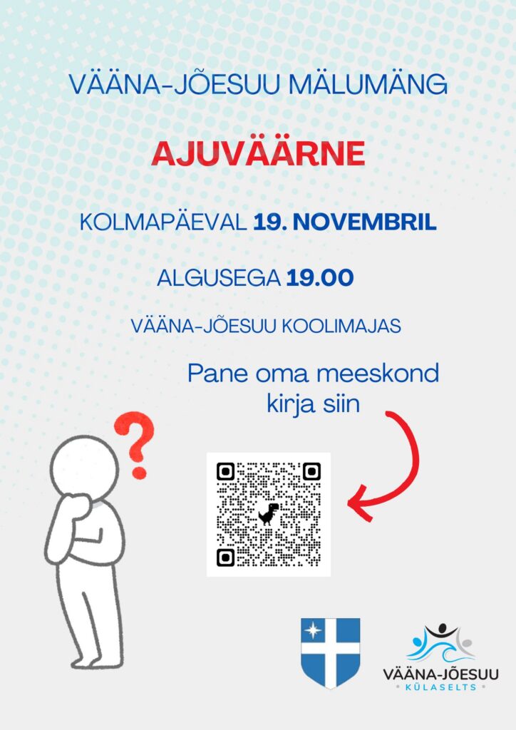 Novembrikuu mälumäng toimub kolmapäeval 19. novembril kell 19.00 tavapäraselt Vääna-Jõesuu koolimajas. Oodatud on ikka kõik seni osalenud mängurid ja alati mahub juurde ka uusi tulijaid.