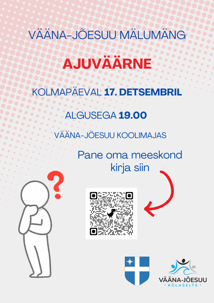 Detsembrikuu mälumäng toimub kolmapäeval 17. detsembril kell 19.00 tavapäraselt Vääna-Jõesuu koolimajas.